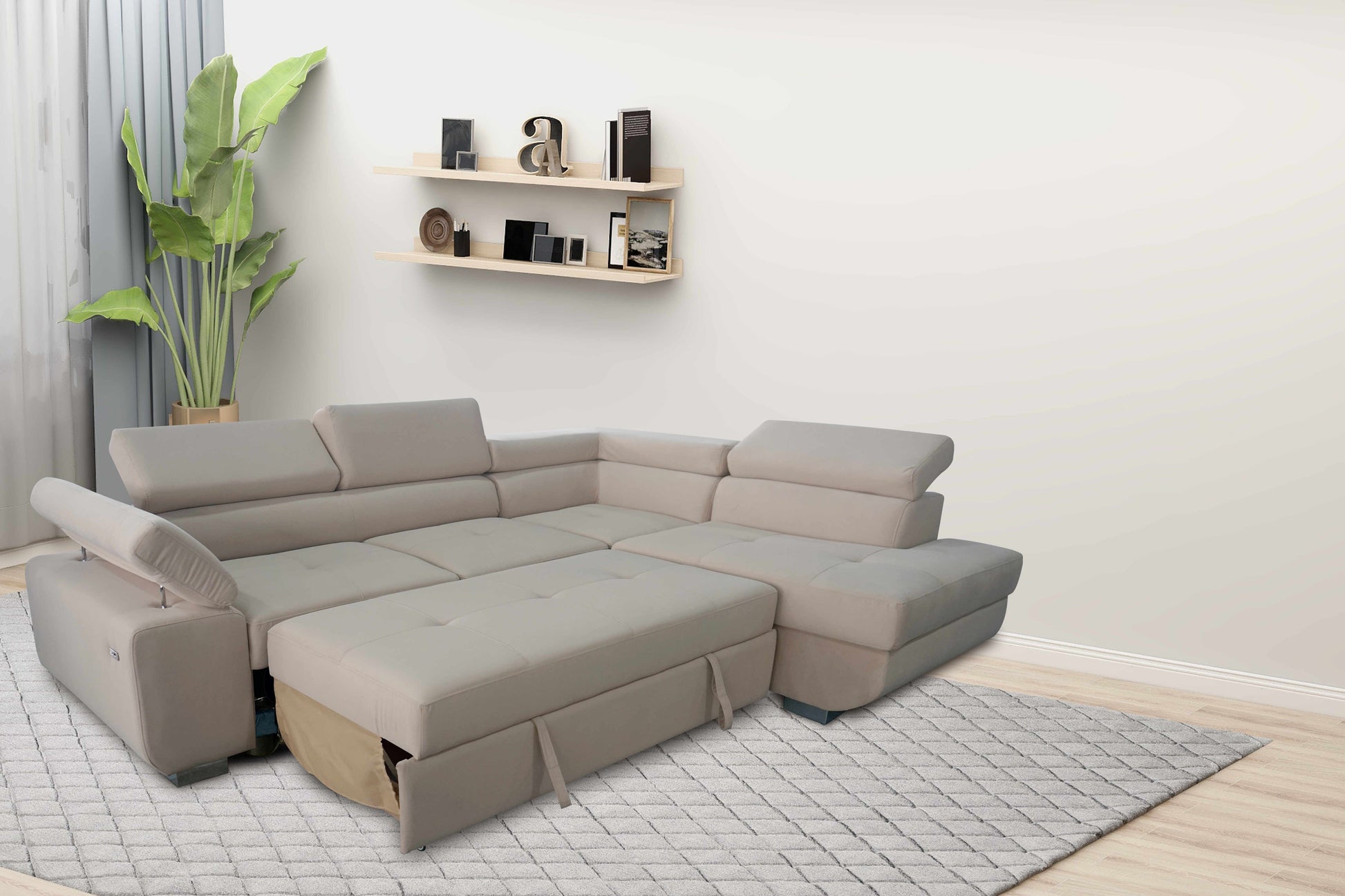 Why Choose the ARTIC Sofa Bed? The ARTIC Sofa Bed combines modern design with everyday practicality. Whether you're entertaining guests or looking for a versatile solution for small spaces, this sofa bed has you covered. The adjustable headrests offer customizable comfort, and the pull-out bed function ensures you always have a comfortable space for overnight visitors. With a large storage compartment under the chaise, it helps you keep your living space organized and clutter-free.