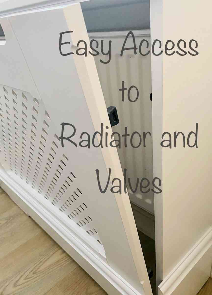 Hinged cabinet door for easy access to the radiator and valves
